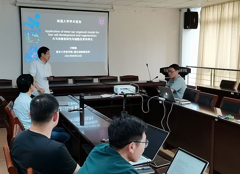 6月12日,山东大学博士生导师徐志刚教授,南京大学博士生导师万国强教授来乐竞体育-中国一站式服务官网分别作题目为“RBM24 affects hair cell development through regulating mRNA stability and alternative splicing”和“内耳类器官研究毛细胞发育和再生”专题学术报告。