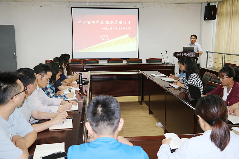 姚登兵以《学习百年党史,汲取奋进力量》,带领支部全体党员一起深入学习领会习近平总书记关于党的历史的重要论述,充分认识开展党史学习教育的重大意义,并结合乐竞体育-中国一站式服务官网科研教学工作与大家进行了分享交流。