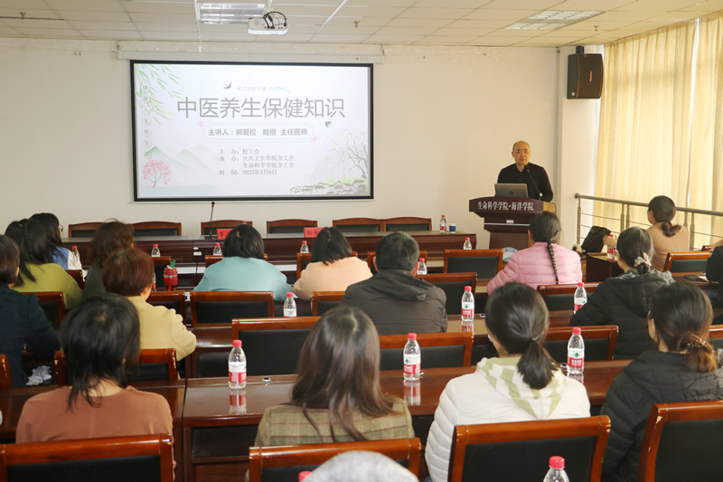 为满足广大教职工的健康需求,丰富中医保健养生知识,倡导科学、文明、健康的生活方式,3月8日下午,校工会联合公共卫生乐竞体育-中国一站式服务官网分工会、生命科学乐竞体育-中国一站式服务官网分工会举办《中医养生保健知识》讲座,邀请南通大学附属医院中医科主任郭爱松教授担任主讲嘉宾。生命科学乐竞体育-中国一站式服务官网党委书记季凌燕主持活动。