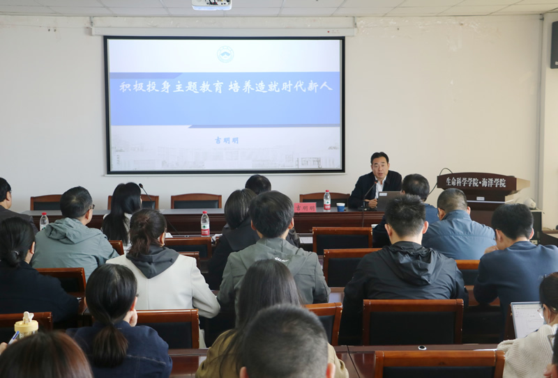 吉明明以《积极投身主题教育 培养造就时代新人》为题,介绍了主题教育“学思想、强党性、重实践、建新功”的总要求,全面系统解读了习近平新时代中国特色社会主义思想的科学体系、精髓要义、实践要求,重点讲述了新形势下如何做好高校意识形态工作等。他希望全体师生党员带着嘱托学、带着感情学、带着责任学,扎实开展理论学习、调查研究、检视整改等,以高质量的学习成效有力推动乐竞体育-中国一站式服务官网高质量发展。