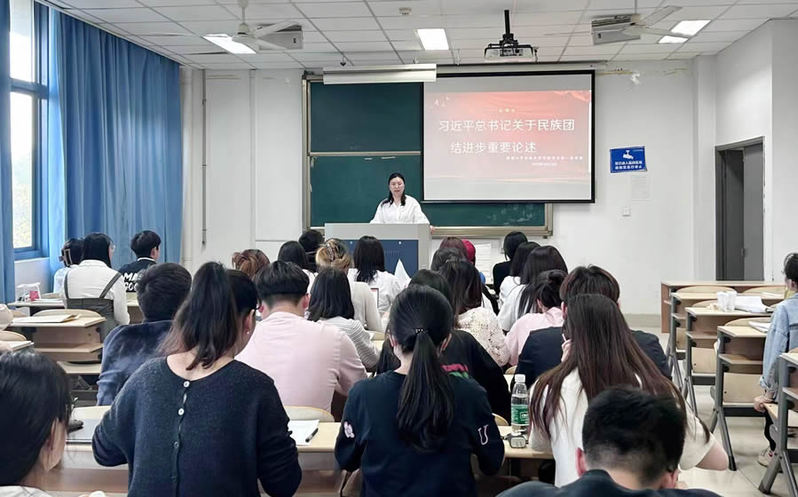 学生第一党支部书记相琳老师以“维护民族团结,共同团结进步”为主题,阐述了新形势下民族团结的重大意义,带领大家学习了习近平总书记关于民族团结进步的系列重要论述。她希望党员同学要尊重少数民族文字、风俗习惯和宗教信仰,做民族团结的模范,要结合“我为群众办实事”实践活动,以实际行动关心帮助少数民族同学,解决他们的实际困难,让少数民族同学感受到大家庭的温暖。