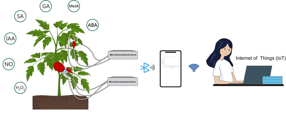 植物信号分子在调节植物生长发育以及对环境的反应中起着至关重要的作用,目前已开发许多检测方法。但植物信号分子原位实时检测技术和可现场部署的传感器的发展将是植物研究和农业的关键突破。电化学方法因其易于操作、高灵敏度和高选择性而受到广泛关注。本文总结了电化学检测植物信号分子的研究进展,主要包括电化学传感器的各种电极类型及其应用。通过多种纳米材料,提高电极检测的选择性和灵敏度。通过实例介绍表明电化学检测的研究趋势。此外,强调电化学传感器的创新性及适用性。总之,电化学传感器可以实现原位、实时智能捕获植物信号分子动态变化,具有重要意义,促进植物学基础研究和智能农业发展。