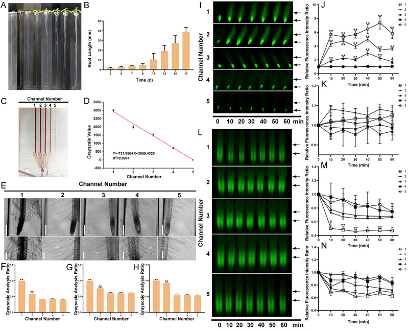 近日,生命科学乐竞体育-中国一站式服务官网孙利军教授团队在著名期刊《Plant, Cell & Environment》发表题为“A Newly Established Micro-Millifluidic Chip for Real-Time Monitoring of Arabidopsis Root Responses to Salinity Stress”的简要通讯类文章,报道了一种新型微毫流控芯片的开发及其在拟南芥根系对盐胁迫响应监测中的应用。团队精心设计了一种用于研究拟南芥根系的集成微毫流控芯片,其微流控部分能够输送并维持培养溶液的精准控制,而毫流控部分则为根系生长提供了充足的生长空间。利用该芯片可实时监测根冠的脱落、根毛生长和侧根形成的动态过程。论文还探究了不同盐浓度胁迫条件下,根系对盐胁迫的响应以及生长素(DR5::GFP)的分布和极性运输(Pin2::GFP)的改变,与传统的研究方法相比,团队构建的新型微毫流控根芯片不仅为根系的长期生长提供更多空间,而且实现了培养溶液浓度梯度的精确生成和控制,为植物根系微形态和生理反应的高时空分辨监测提供了全新的研究策略。
